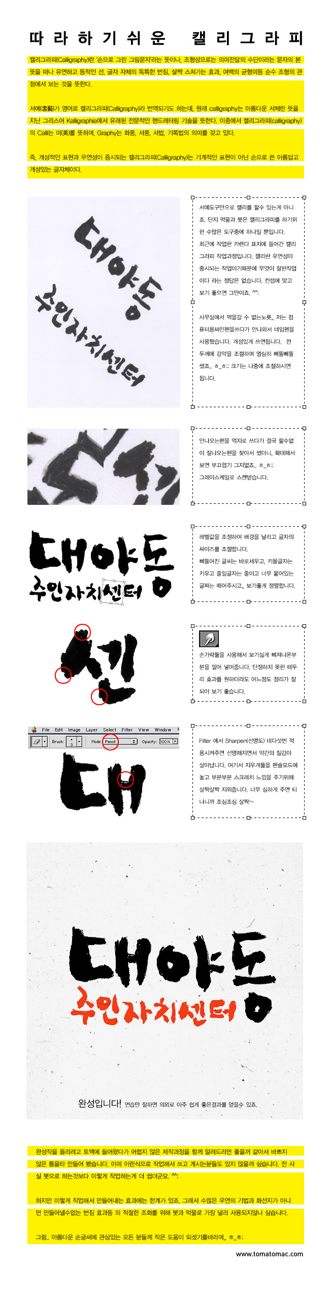 붓글씨쓰기가 쉬운일은 아니지요. 이런 초간편(?)방법이 있었다니